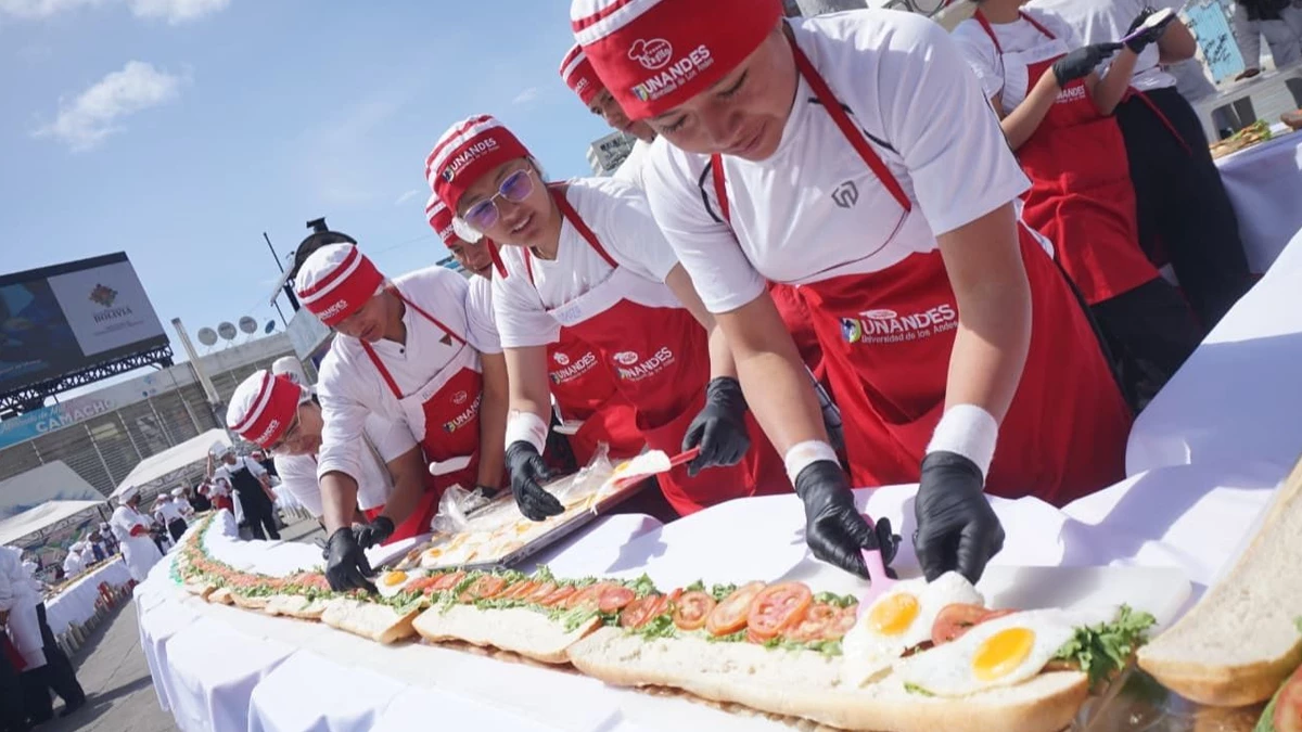 La actividad se realizó en la plaza Camacho, situada en el centro de La Paz, y convocó a estudiantes de cocina que por varias horas trabajaron en elaborar el emparedado que, posteriormente, se compartió con decenas de asistentes al evento y transeúntes.